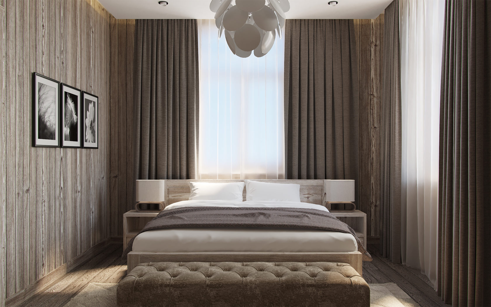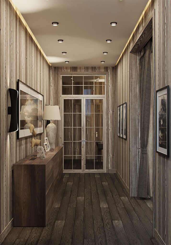 Интерьер подойдет для больших семей, которые ценят простую природную атмосферу, традиции, и принимают темные тона в интерьере.