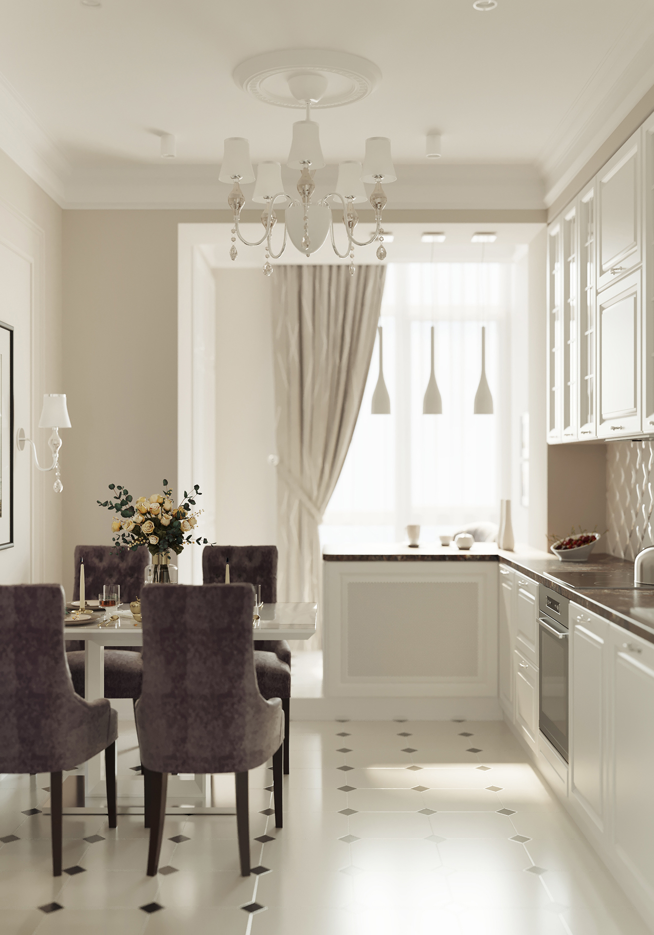 Сегодня квартиру не узнать. Неоклассика — стиль, который выбрал заказчик. Да и сам дом, казалось, диктовал свои условия, накладывая отпечаток истории за его плечами. Теперь здесь строгая классика, много бежевых оттенков, бордо, насыщенный зеленый. Винтажные элементы завершают образ. С чистым сердцем заметим, что это был один из самых запоминающихся проектов. Необычная пара и самобытный стиль, как мы его записали в мыслях — «старая Москва».