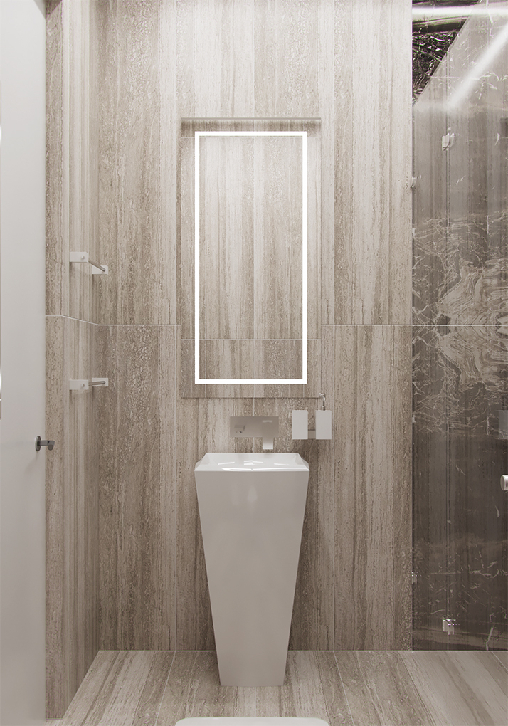 Заказчик — молодой человек, который все время погружен в работу, он ценит время и комфорт. Поэтому главной задачей стало создание практичного пространства, отвечающего запросам человека. Проект вышел в какой-то степени портретным Каждая деталь ориентирована под человека, который будет там жить, его образ жизни и характер.
